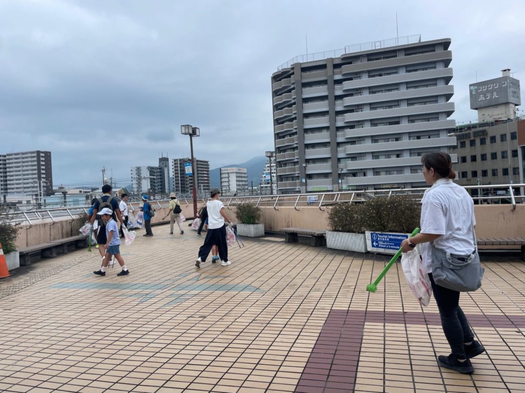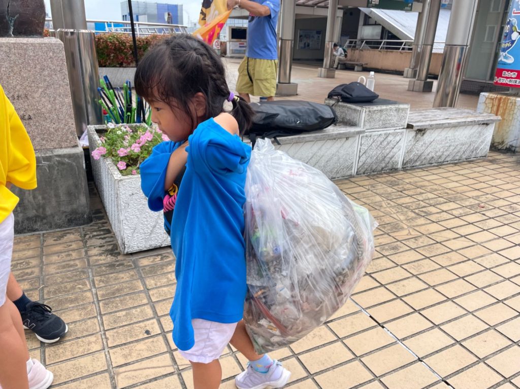 当初は田子の浦での海岸清掃予定でしたが、ごみの収集の関係で場所を富士駅周辺へ変更しました。
