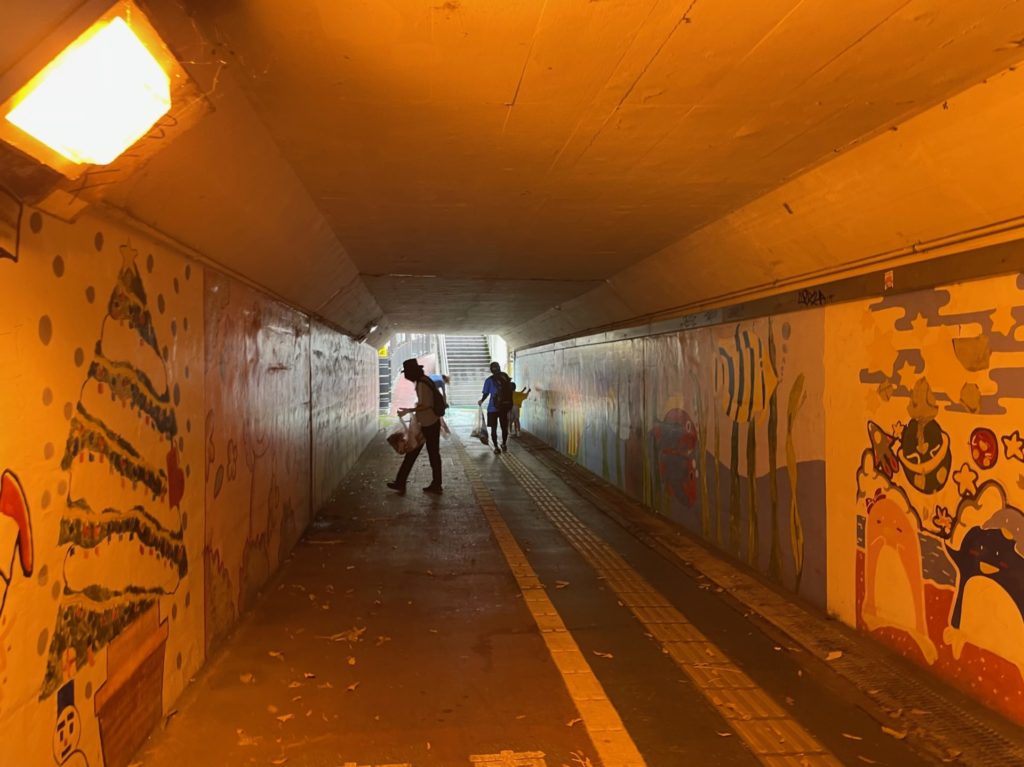 富士駅南チームは駅の構内を抜けて南口へ向かいます。